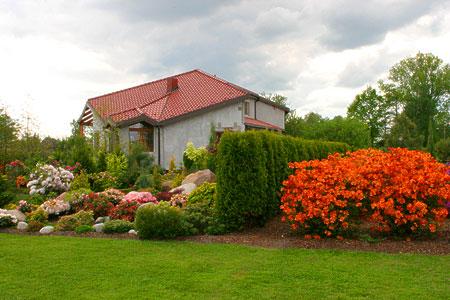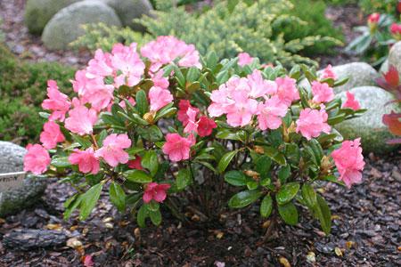 Sposobem, który polecamy klientom przy sadzeniu rododendronów i azalii jest sadzenie ich w kwaśny torf o PH 3.5-4.5. Dla zmniejszenia kosztów nasadzeń z reguły wystarczy dla roślin wykopać odpowiedniej wielkości dołki (szersze niż głębsze) - w ten sposób nie musimy wymieniać całej ziemi dla danego stanowiska. Należy pamiętać, aby tuż po posadzeniu torf obficie podlać - odpowiednie nawodnienie jest w początkowym okresie rozwoju dla rośliny kluczowe. Torfu nie mieszamy z ziemią. Istotne jest żeby gleba pod warstwą torfu była przepuszczalna. W przypadku podłoża gliniastego zalecamy wykopanie głębszych niż standardowo dołków pod roślinę i ich zdrenowanie np. żwirem. Po posadzeniu obsypujemy bryłę korzeniową z wierzchu kilkucentymetrową warstwą kory drzew iglastych. Taki system sadzenia zabezpiecza roślinę przed obsychaniem i porastaniem chwastów.